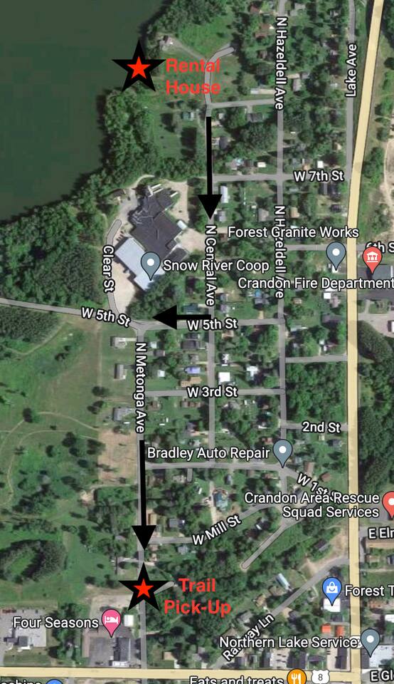 FOREST COUNTY COMMUNITY CENTER: On a rainy day, less than 10 min away is a brand new community center with an indoor pool containing a water slide and hot tub, a few full-sized basketball courts, indoor turf field, and rock wall all for your group to enjoy! CASINOS: If you are looking to try your luck, there are two casinos within 30 minutes of the cabin for your entertainment. Mole Lake Casino (10 min) and Potawatomi Casino (30 min) are open 24/7 and offer bingo, slots, and table games on the casino floor and have a cafe and full service restaurant. RACES: If you have never been to the dirt track races at Crandon International Off Road Raceway located less than 5 min from the house, you don’t know what you are missing. People come from around the world to watch the Red Bull World Cup just a few miles away! FISHING: Clear Lake is a great panfish and bass lake that offers good action year round. Whether it is with your kids off the dock with bobbers, throwing top water for big bass on your boat, or setting tip-ups out for northern, you are bound to see some action! Also less than 3 miles away is Lake Metonga, which is a premier fishing lake in Wisconsin. Come up in late spring through early fall for exceptional trout fishing on over 475 miles of classified trout streams. HIKING: Crandon is part of the Nicolet National Forest and holds tons of hiking trails for your enjoyment. Come up in fall for hiking and enjoy the spectacular show of colors the Nicolet National Forest offers. Otter Springs Recreational Area, Dendo-Eco Nature Trail, Rat River Recreation Trail, Ed's Lake National Recreation Trail and the Laura/Gordon Lake Recreational Trail are all within a half hour of the cabin and provide many miles of groomed foot paths. DINING: Enjoy an Old Fashioned at a Wisconsin staple - the Supper Club. There are numerous dining options in the area that still identify with the tradition along with many iconic bars that sit right on a lake, such as Charlie’s on Lake Metonga and Waters Edge Resort. LAONA STEAMTRAIN: Take the family back in time with a ride on the last remaining authentic steam train operating in the state of Wisconsin. The train takes you back to the Camp 5 Museum which includes a petting zoo, museum, and old settlement buildings. A great side activity for families with kids. SNOWMOBILING: Crandon is a snowmobiler fan favorite as it is a hub for multiple trails like Blackbear Sportsmen’s, Lumberjack Memorial, and Wolf River State Trail to name a few! This is a gateway to hundreds of miles of beautifully groomed snowmobile trails waiting to be explored! Access to all this awaits you at the end of the road and with the large parking area at the home, there is no need to trailer your sleds! Don't have a snowmobile, Northwoods Powersports Adventures has you covered with snowmobile, UTV and ATV rentals just over a mile down the road! DOWNHILL and CROSS COUNTRY SKIING The Nicolet National Forest offers many options for cross country skiing, including Ed’s Lake National Recreation Trail, and the Lakewood Cross Country Ski Trail. For downhill skiing, Ski Brule is located less than 50 minutes away in Iron River, Michigan. It offers seventeen ski runs and eleven lifts. Runs include five green circles, six blue squares, three black diamonds, and one double black diamond